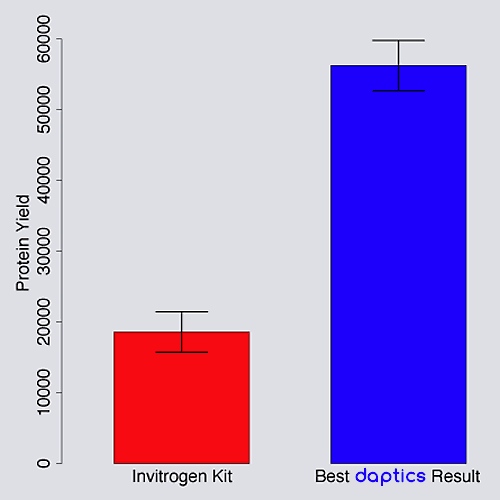 daptics has been used to optimize the amount of functional protein synthesized with a commercial in vitro synthesis kit.3 The experimental parameters included many possible DNA sequences, amino acid proportions, salts, buffers, and process variables.